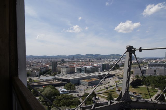 Boven in het reuzenrad heb je ook een uitzicht over de stad