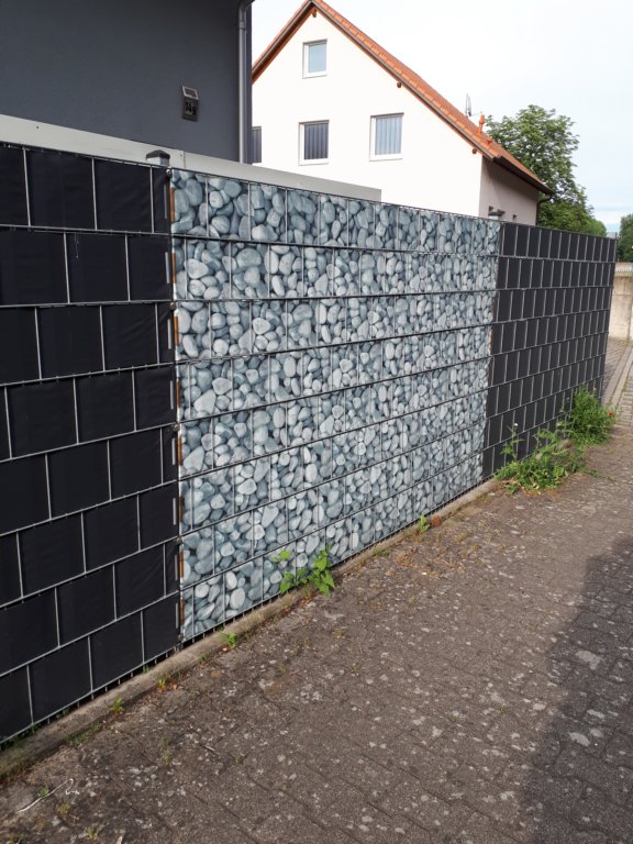 Tijdens de wandeling in Wörth am Rhein zagen we deze schutting.